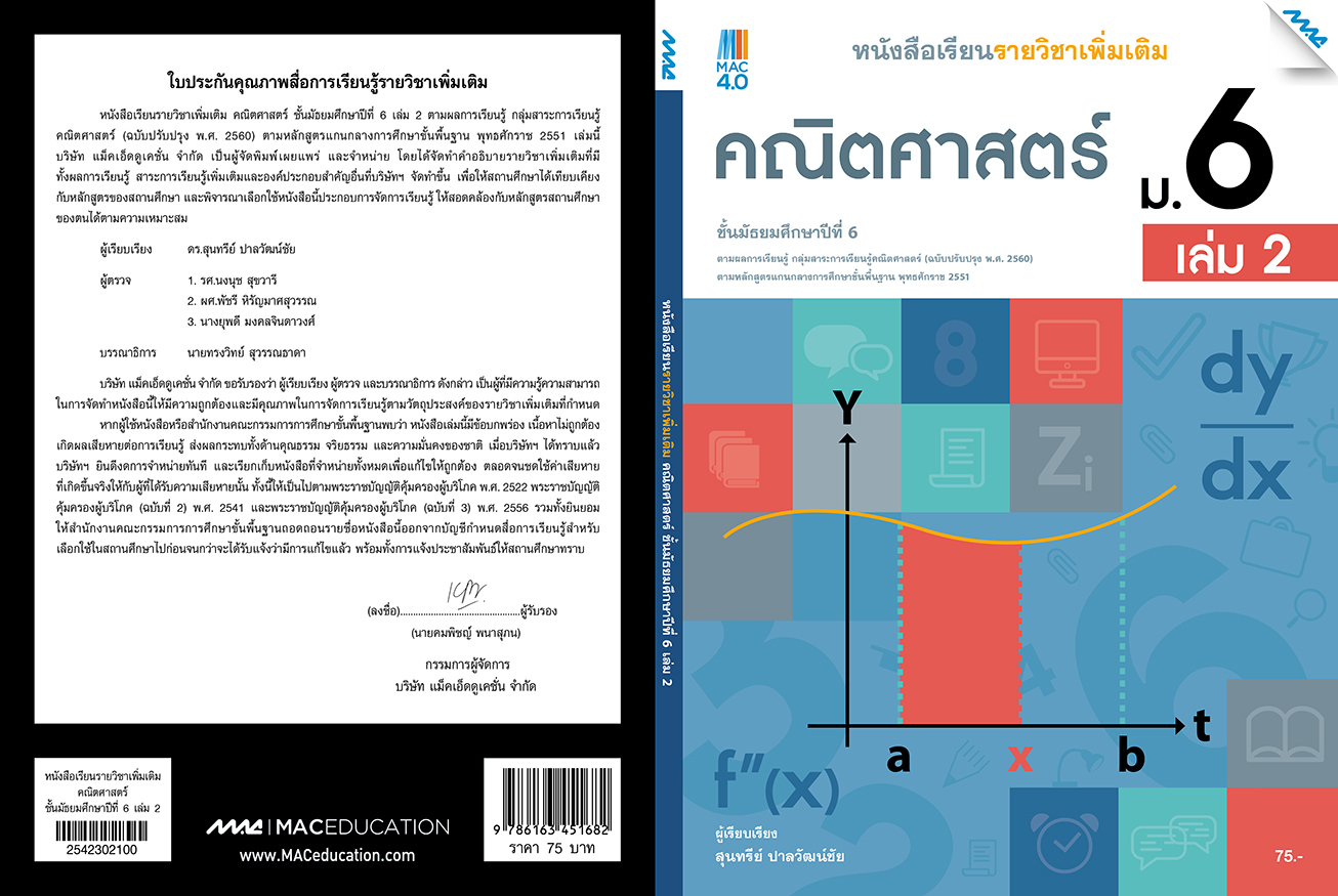สินค้า / หนังสือเรียนพื้นฐาน / คณิตศาสตร์ / ระดับมัธยมปลาย / หนังสือเรียนรายวิชาเพิ่มเติม ม.4-6 / หนังสือเรียน คณิตศาสตร์เพิ่มเติม ม.6 เล่ม 2 (หลักสูตรปรับปรุง พ.ศ. 2560)