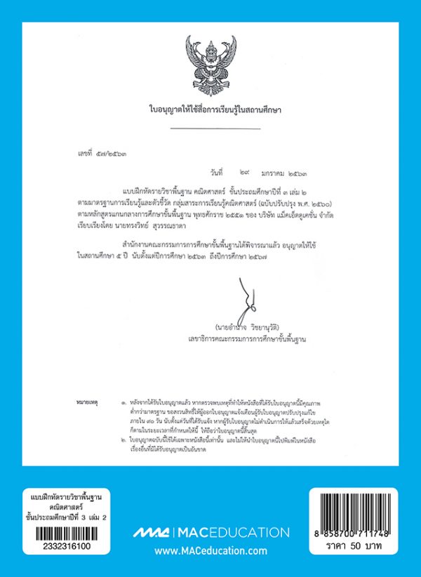 แบบฝึกหัดคณิตศาสตร์พื้นฐาน ป.3 เล่ม 2 (หลักสูตรปรับปรุง พ.ศ. 2560)