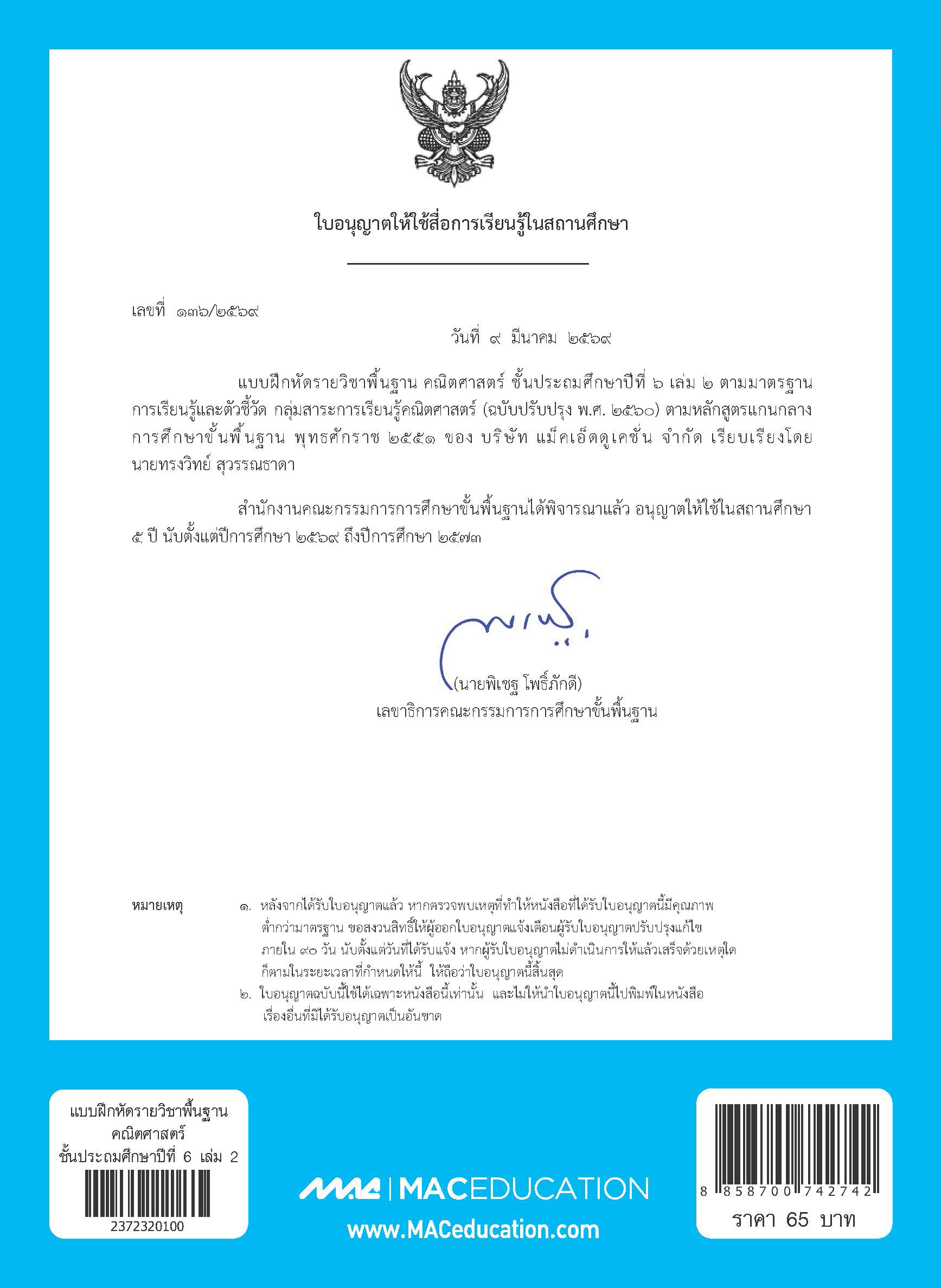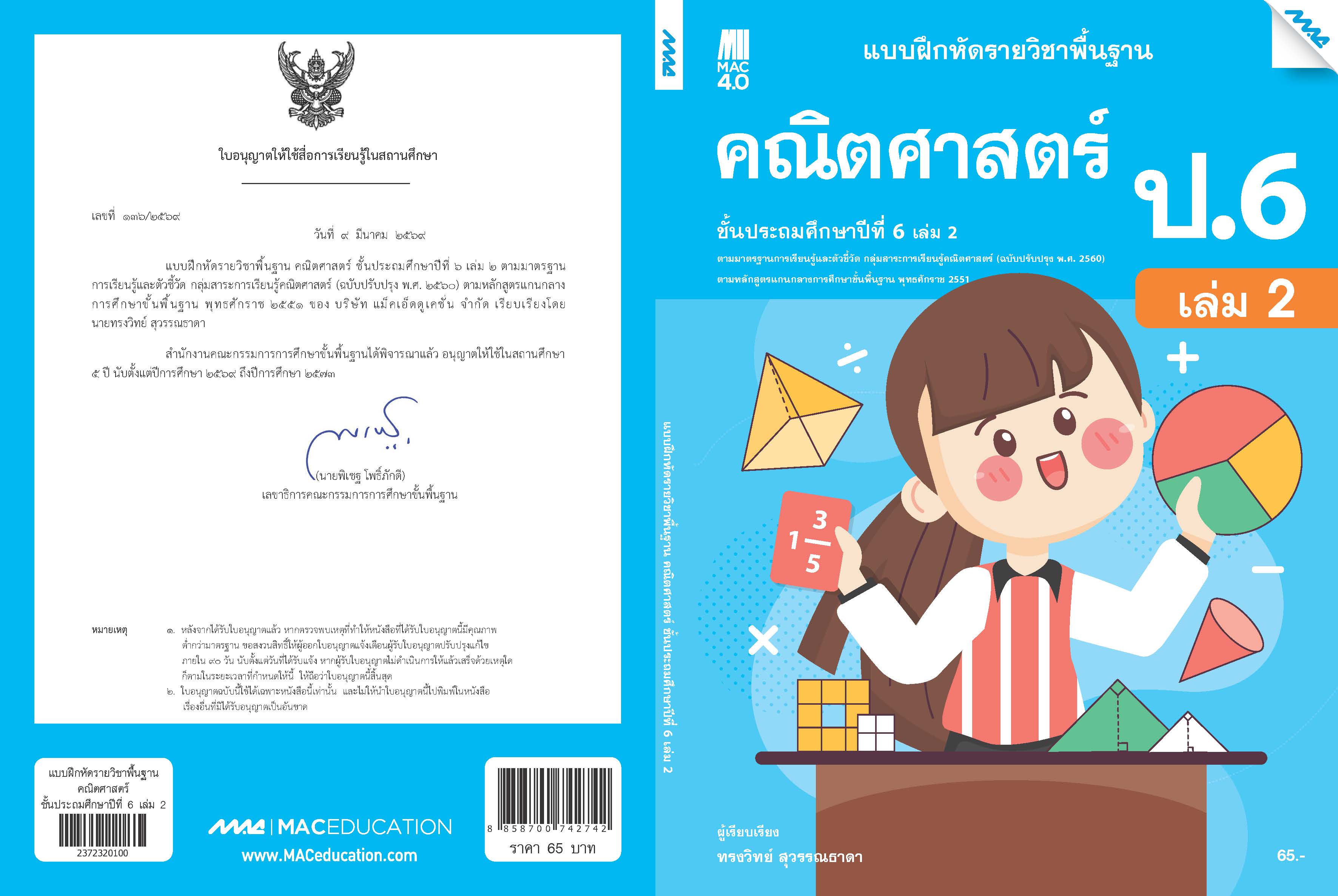 สินค้า / หนังสือเรียนพื้นฐาน / คณิตศาสตร์ / ระดับประถม / แบบฝึกหัด ป.1-6 / แบบฝึกหัดคณิตศาสตร์พื้นฐาน ป.6 เล่ม 2