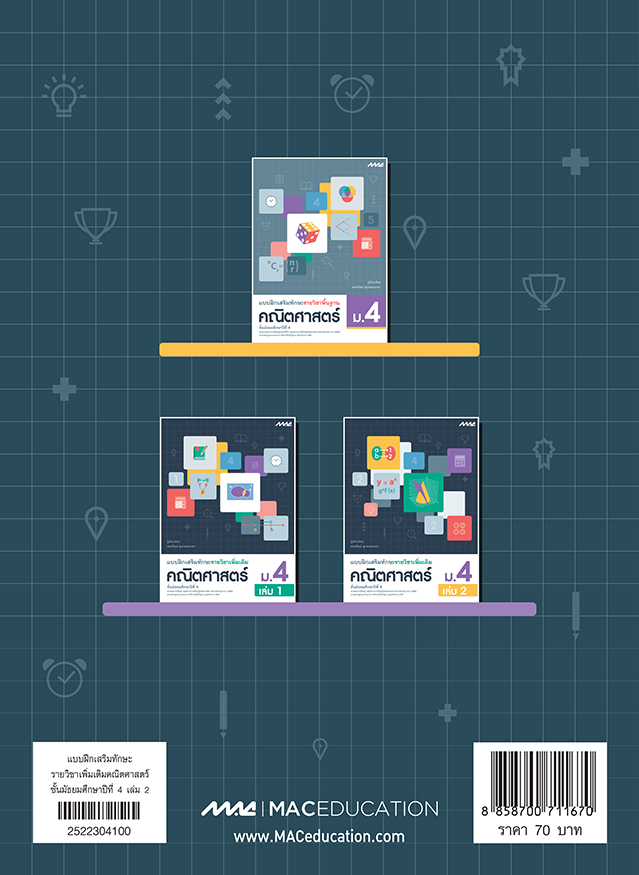 แบบฝึกเสริมทักษะรายวิชาพื้นฐานคณิตศาสตร์ มุ่งพัฒนาการคิดวิเคราะห์ ความคิดสร้างสรรค์ คิดอย่างมีเหตุผลเป็นระบบ ให้ผู้เรียนสามารถแก้ปัญหาหรือสถานการณ์ได้อย่างครบถ้วนตามทักษะและกระบวนการทางคณิตศาสตร์