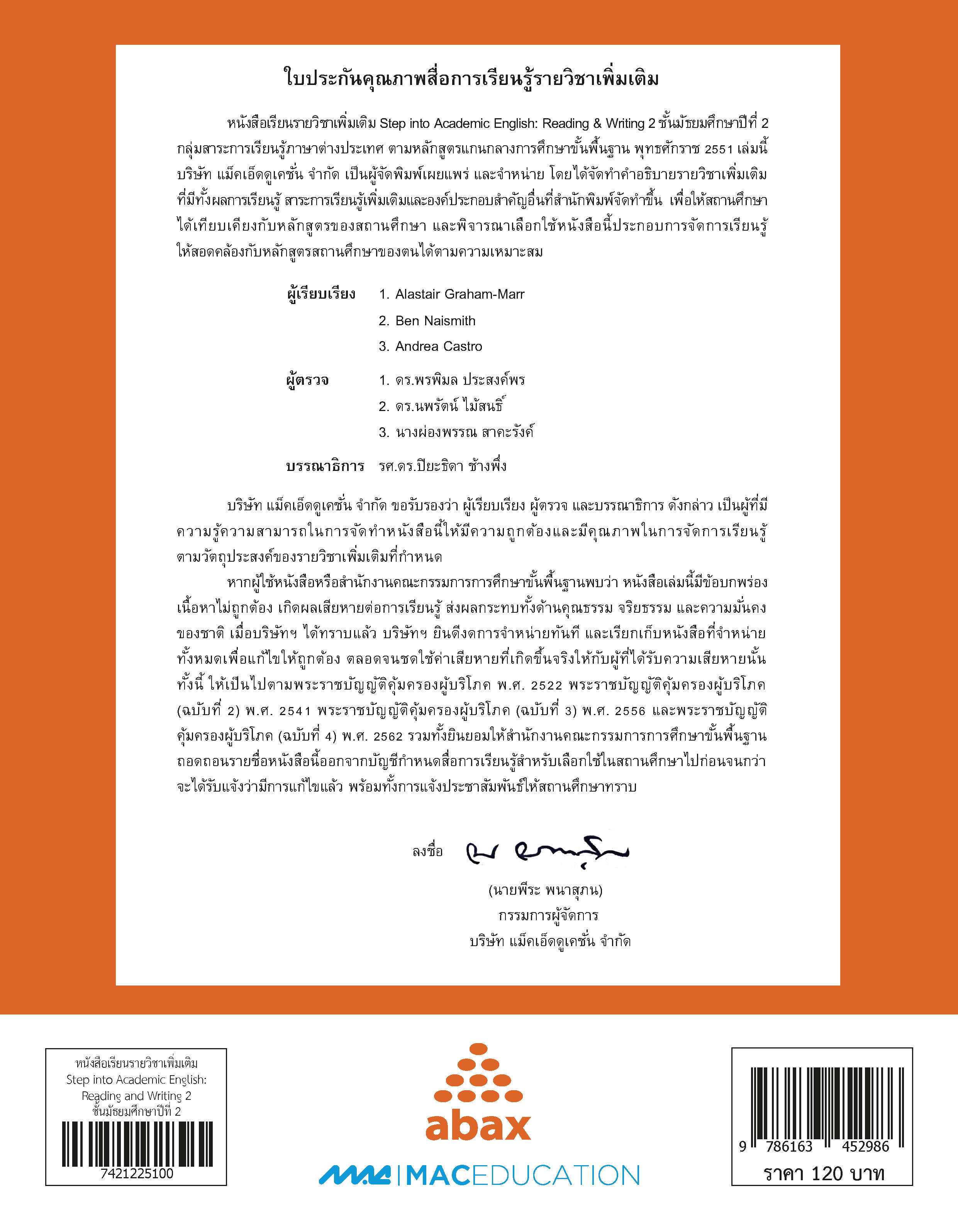 พัฒนาทักษะการอ่านและเขียน พร้อมฝึกทักษะการฟังโดยเรียนรู้ผ่านเรื่องราวที่น่าสนใจจากทั่วโลก ฝึกกลวิธีในการอ่าน (reading strategies) และฝึกเขียนย่อหน้าแบบง่ายๆ โดยเรียนรู้โครงสร้าง (structure of paragraphs) ซึ่งประกอบด้วยหัวเรื่อง (topic) ใจความสำคัญ (main ideas)ประโยคสนับสนุน (supporting sentences) ไปจนถึงการเขียนย่อหน้าประเภทต่าง ๆ พร้อมวงคำศัพท์และระดับภาษาตามกรอบ CEFR →A2
